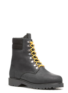 Évolution audacieuse de notre silhouette classique Lukas, la Lukas.3 réinvente la botte d’hiver avec un esprit alpin raffiné. Confectionnée en cuir pleine fleur imperméable et doublée de laine naturelle dense, elle offre une chaleur respirante et une protection fiable par temps froid. Le col rembourré en suède adoucit la ligne, tandis que la quincaillerie gris canon et les lacets jaunes cirés ajoutent une touche distinctive. Montée sur une semelle crantée conçue pour affronter la neige et la gadoue, elle suit le rythme de l’hiver, en ville comme dans les paysages d’hiver.