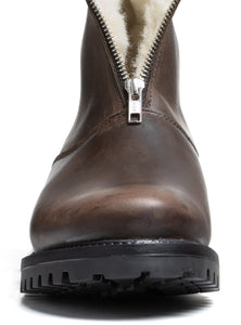 La botte ROMAIN marie silhouette moderne et fonctionnalité par temps froid. Confectionnée à la main en cuir pleine fleur imperméable de qualité supérieure, elle est entièrement doublée de laine naturelle pour une chaleur respirante. Sa fermeture éclair frontale distinctive permet un enfilage facile, tandis que sa semelle antidérapante robuste assure une excellente traction sur les surfaces hivernales. Conçue pour offrir confort, protection et style urbain sans effort.