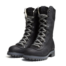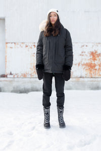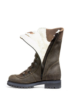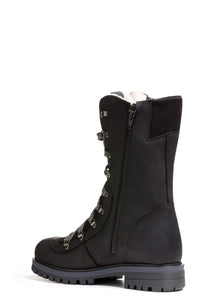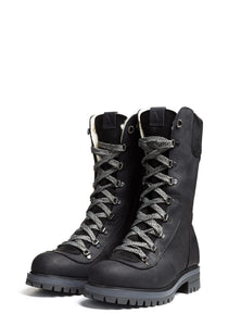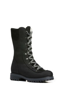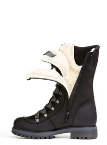 La version VALANGA à semelle antidérapante reprend la silhouette haute et isolée de notre modèle original, mais remplace le système de crampons OCsystem® par une semelle robuste et résistante au froid. Confectionnée avec soin en cuir pleine fleur imperméable et en suède de veau, elle est entièrement doublée de laine naturelle dense, du bout des orteils jusqu’au col, pour une chaleur constante. Son laçage complet et sa fermeture éclair latérale assurent un ajustement sécuritaire et personnalisé, tandis que la semelle crantée garantit une adhérence fiable sur toutes les surfaces hivernales.
