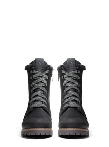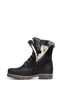 La botte VAIL est une incontournable de la saison froide, soigneusement fabriquée en cuir pleine fleur imperméable et doublée luxueusement de laine naturelle, de haut en bas. Son col et sa languette bordés de peau de mouton ajoutent une touche de douceur, tandis que les surpiqûres contrastantes renforcent à la fois la structure et le style. Conçue pour une traction optimale en hiver, la VAIL est équipée de semelles OCsystem® à crampons pour rester bien ancré sur les surfaces glacées. Sa fermeture éclair latérale et son laçage assurent un ajustement précis et confortable. Des trottoirs enneigés aux escapades hivernales, cette botte offre chaleur, adhérence et élégance discrète à chaque pas.
