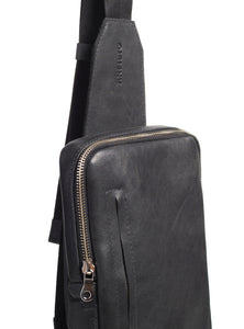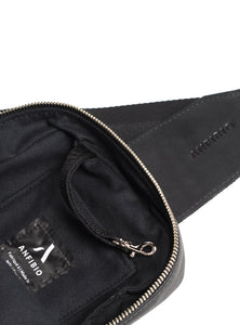 Sac messager en cuir pleine fleur noir imperméable comportant un logo en relief sur la ganse. Ganse ajustable en bandoulière avec fermeture à agrafe et anneau en D à l’arrière. Compartiment à fermeture éclair YKK à l’avant. Fermeture éclair à sens unique pour le compartiment principal. Poche plaquée à l’intérieur. Doublure en coton assorti. Garnitures argentées. Environ 30 cm de longueur × 20 cm de largeur.