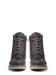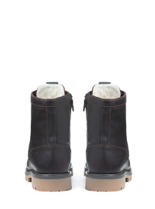 La botte Arnaud marie lignes épurées et performance hivernale fonctionnelle. Confectionnée en cuir vieilli imperméable dans un ton aubergine profond, elle est rehaussée de surpiqûres contrastantes pour une finition soignée. Son laçage épuré s’accompagne d’une fermeture éclair intérieure discrète pour un enfilage facile, tandis que la doublure en laine naturelle dense assure une chaleur fiable. Montée sur une semelle antidérapante, l’Arnaud offre adhérence, confort et style discret, parfaite autant pour les rues urbaines que pour les escapades du week-end.