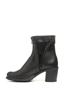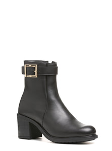 Des lignes minimalistes rencontrent un caractère audacieux dans la botte ÉLIXE, une étude de force raffinée. Confectionnée en cuir pleine fleur lisse, sa silhouette est rehaussée par une boucle distinctive et posée sur un talon bloc qui lui confère prestance et assurance. À l’intérieur, la laine naturelle tapisse le pied et la tige pour isoler là où c’est le plus essentiel, tandis que la tige en microfibre douce améliore la respirabilité et le confort. Une fermeture éclair intérieure discrète assure un chaussage facile sans interrompre la fluidité de ses lignes.