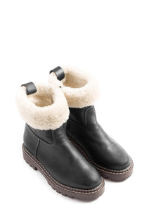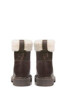La botte SUREN allie fonctionnalité robuste et savoir-faire raffiné. Confectionnée en cuir pleine fleur imperméable et entièrement doublée de laine naturelle, elle est conçue pour affronter l’hiver avec élégance. Le col en peau de mouton offre une isolation douce et une touche alpine chaleureuse, tandis que la semelle antidérapante est soulignée d’une double piqûre contrastante, un détail unique qui marie durabilité et artisanat. À mi-chemin entre héritage et modernité, SUREN accompagne avec style les femmes qui affrontent l’hiver avec assurance.