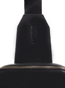 Sac messager en cuir pleine fleur noir imperméable comportant un logo en relief sur la ganse. Ganse ajustable en bandoulière avec fermeture à agrafe et anneau en D à l’arrière. Compartiment à fermeture éclair YKK à l’avant. Fermeture éclair à sens unique pour le compartiment principal. Poche plaquée à l’intérieur. Doublure en coton assorti. Garnitures argentées. Environ 30 cm de longueur × 20 cm de largeur.