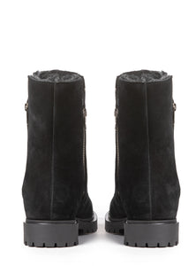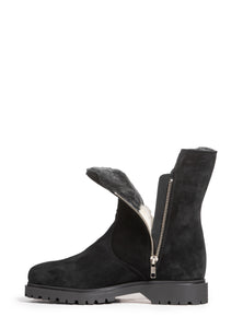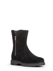 La botte VALENTINA allie sophistication intemporelle et confort au quotidien. Fabriquée en suède italien imperméable, elle est entièrement doublée de laine naturelle pour une isolation douillette. Son col intérieur orné de véritable mouton ajoute une touche de douceur et de chaleur. Grâce à ses deux fermetures éclair latérales, elle est facile à enfiler sans compromettre son style épuré. Parfaite pour rester au chaud tout en affichant une allure élégante cet hiver.