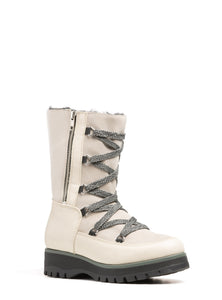 La MISHA allie performance hivernale et design raffiné. Confectionnée en cuir pleine fleur imperméable et en suède, cette botte mi-mollet est entièrement doublée de peau de mouton naturelle pour une chaleur respirante et isolante. Munie de deux fermetures éclair pour un enfilage facile, elle repose sur une semelle italienne crantée offrant une adhérence fiable sur les surfaces enneigées. Offerte dans un élégant ton crème, la MISHA passe aisément de la ville aux paysages alpins.