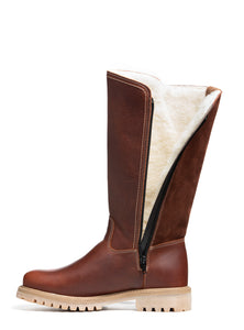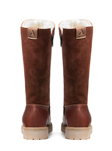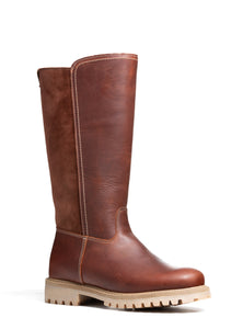 La botte NEVA marie l’esthétique classique inspirée de l’équitation à une fonctionnalité hivernale fiable. Confectionnée en cuir pleine fleur imperméable et en suède de veau imperméable, elle est entièrement doublée de laine naturelle pour une isolation douillette. Sa semelle antidérapante assure une adhérence sûre, tandis que sa silhouette haute offre plus de couverture et une allure résolument élégante. Aussi pratique que raffinée, la NEVA passe sans effort de la ville aux promenades à la campagne.