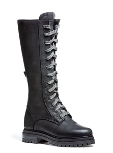 Soyez à l’abri du vent, de la pluie, de la neige et du froid, en portant cette botte haute noire. La SASHA a aussi une semelle antidérapante, pour vous assurer de rester en parfait contrôle durant l’hiver.