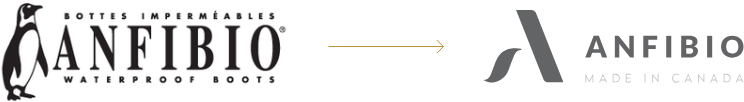 Anfibio s’affiche comme l’emblème d’un style de vie : son nouveau logo représente la silhouette d’un pingouin au centre de la lettre A. Cette image, qui est à la fois créative et accessible, symbolise aussi l’évolution même de la célèbre marque de bottes. La vocation d’Anfibio est encore et sera toujours d’offrir des bottes qui sont entièrement fabriquées au Québec. Le savoir-faire de l’artisan, le patrimoine familial et l’innovation technologique : voici les trois axes qui animent et concrétisent la marque Anfibio.
