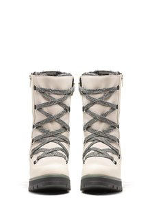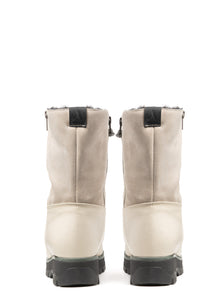 La MISHA allie performance hivernale et design raffiné. Confectionnée en cuir pleine fleur imperméable et en suède, cette botte mi-mollet est entièrement doublée de peau de mouton naturelle pour une chaleur respirante et isolante. Munie de deux fermetures éclair pour un enfilage facile, elle repose sur une semelle italienne crantée offrant une adhérence fiable sur les surfaces enneigées. Offerte dans un élégant ton crème, la MISHA passe aisément de la ville aux paysages alpins.
